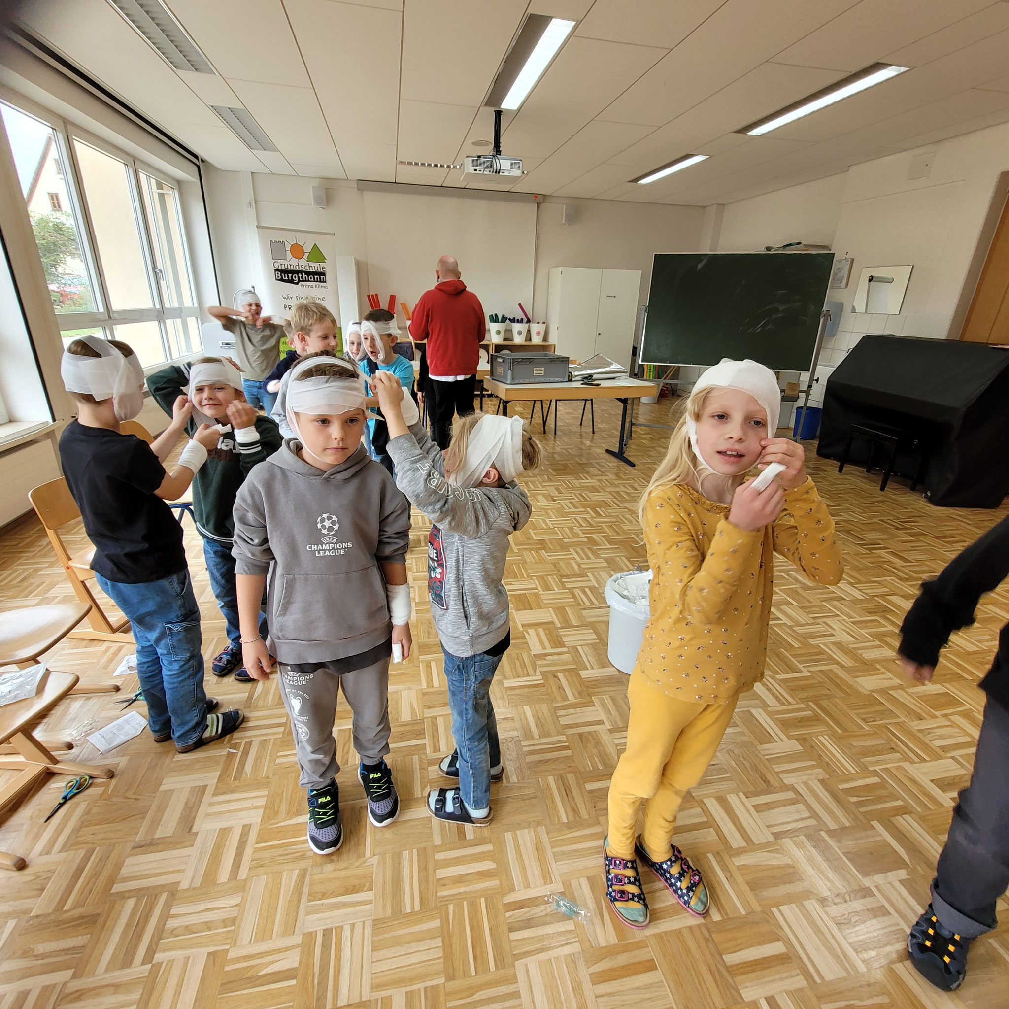 Im Rahmen der Woche der Gesundheit und Nachhaltigkeit durften die zweiten Klassen der Grundschule Burgthann im Herbst an einem vierstündigen Erste-Hilfe-Kurs teilnehmen. Geleitet wurde der Kurs von Daniel Hengelein vom Bayrischen Roten Kreuz, der den Kindern auf spannende und kindgerechte Weise zeigte, wie man in Notsituationen richtig reagieren kann.
