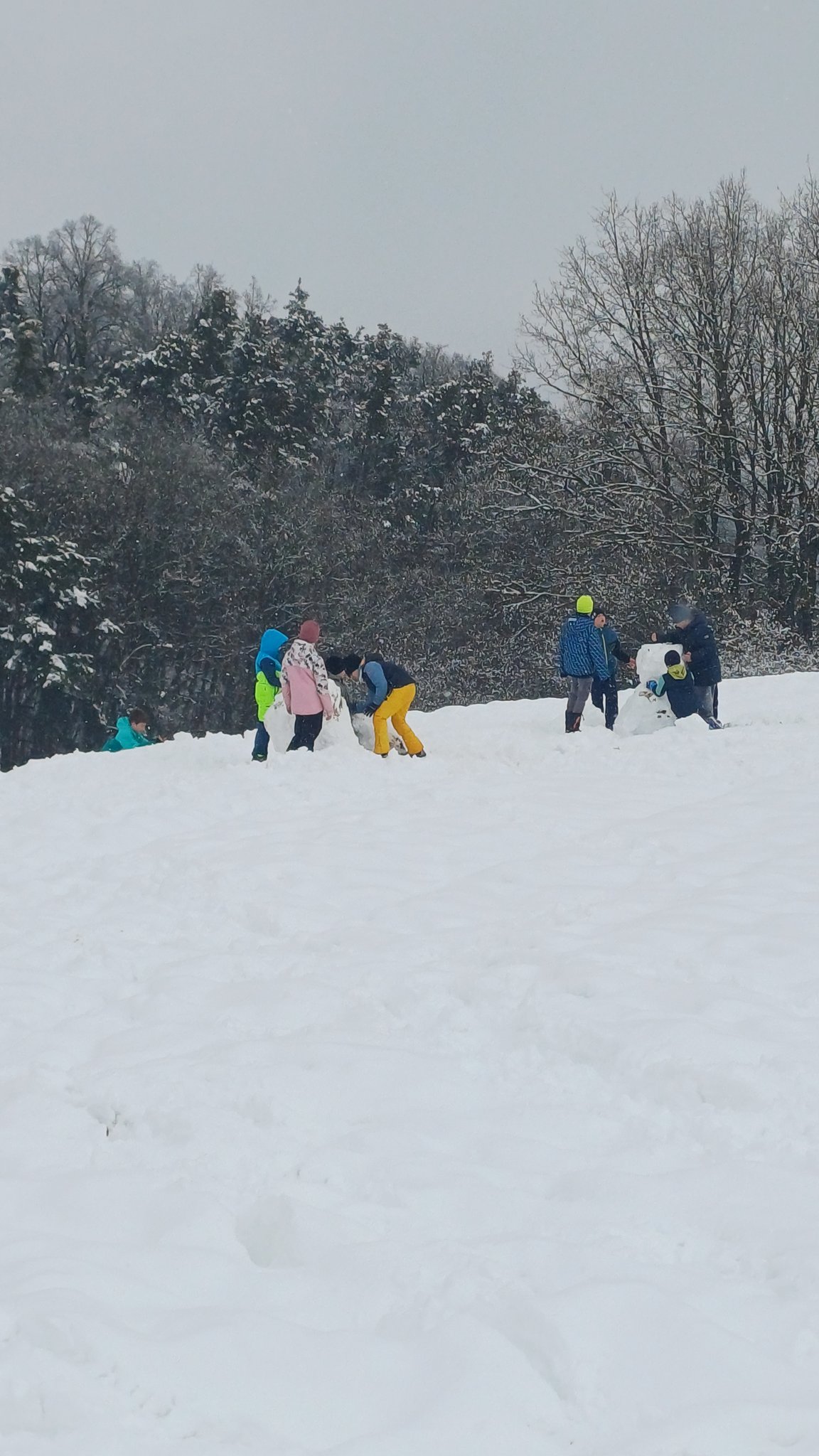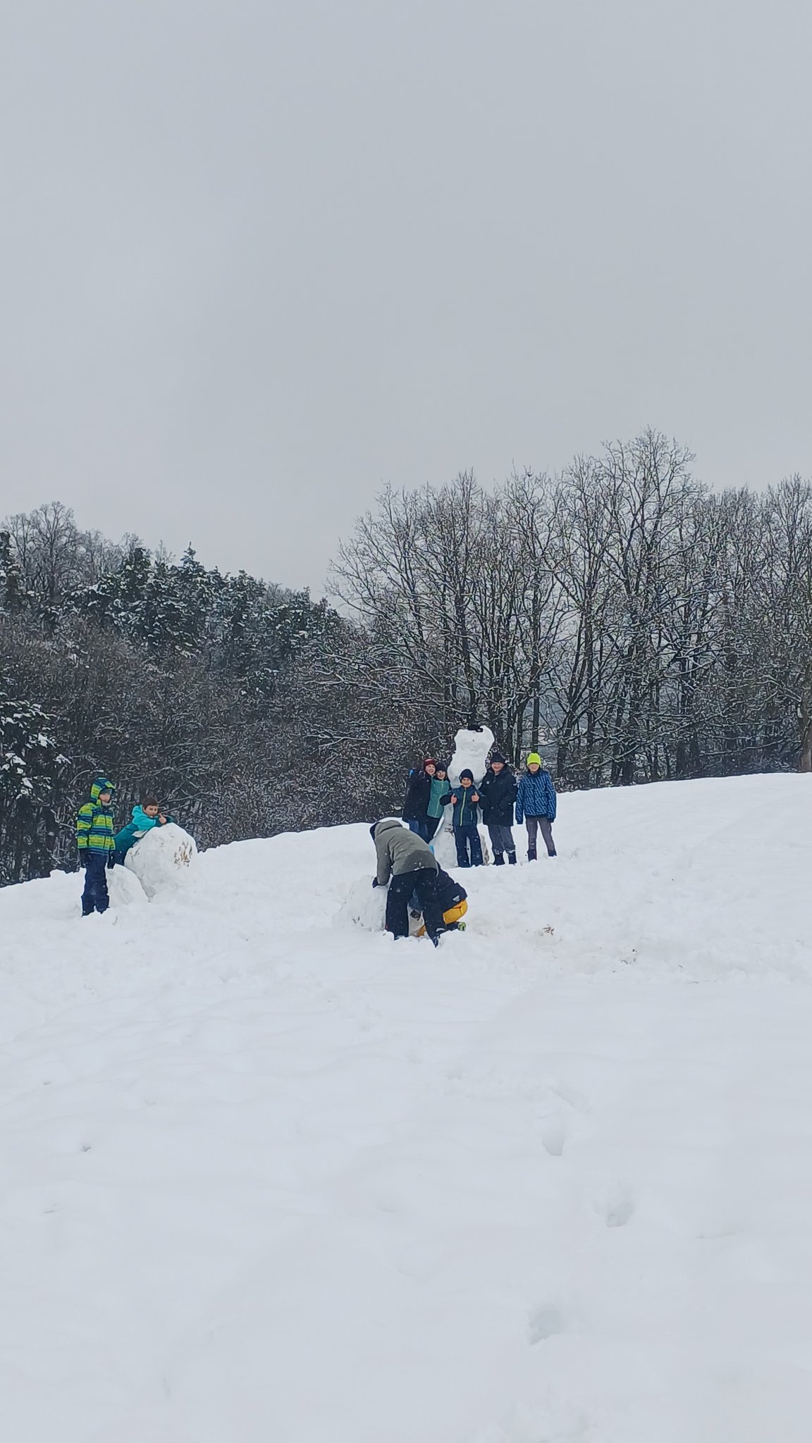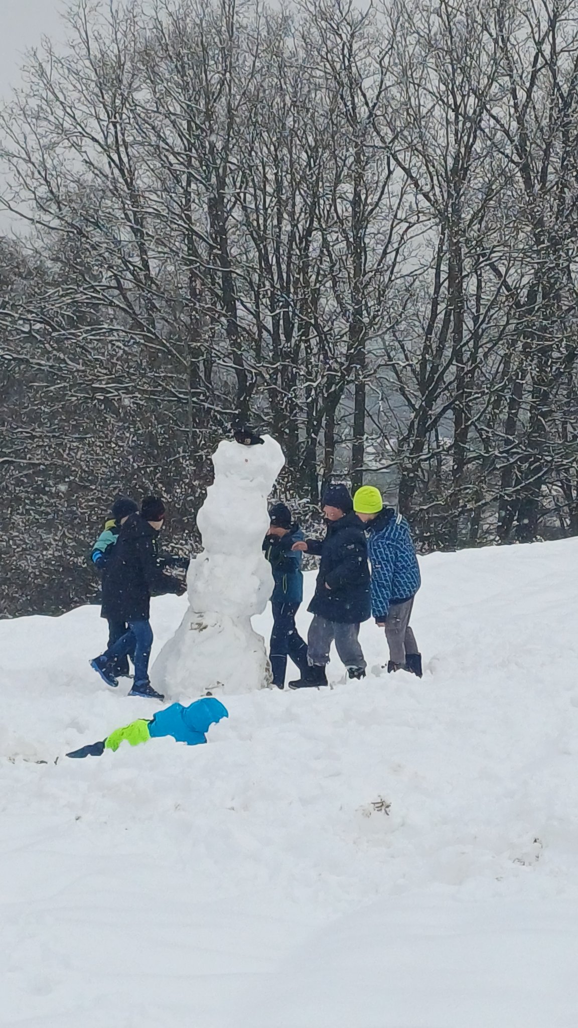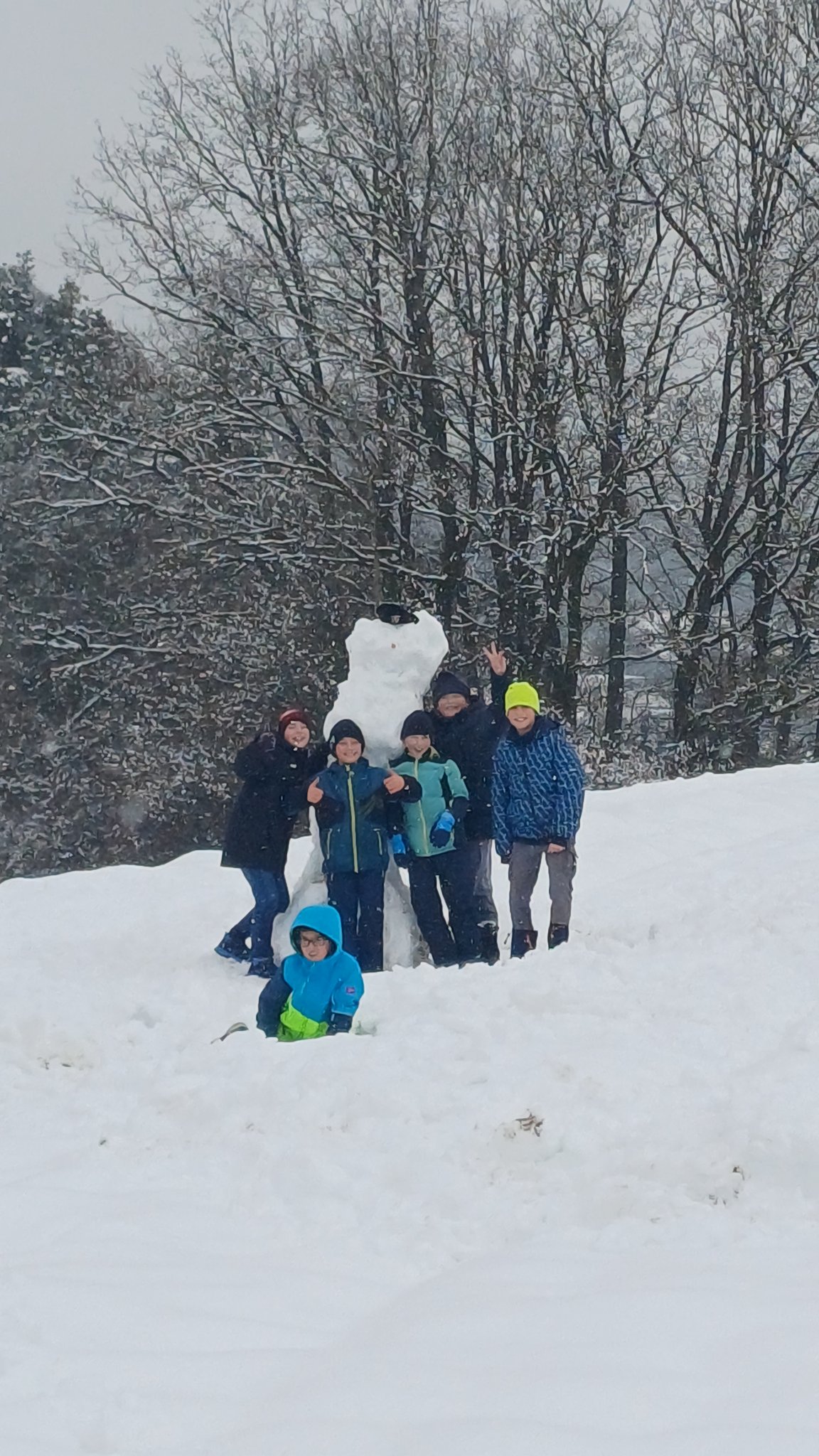 Am 29.01.2026 ging die 4c auf die Wagnerswiese. Dort rollten wir zusammen 4 große Kugeln die wir zu einem vierstöckigen Schneemann stapelten.
